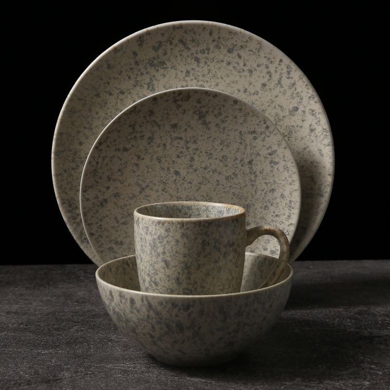 Granite Ceramic Plate Nature Stone Pattern Ceramic Dinner Sets Porcelain Granite Grain Round Plate Bowl Mug Set