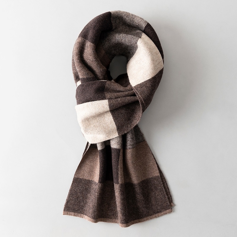 Men Pure Wool Scarf for Winter Plaid Warm Neck Scarves Classic Business 100% Wool Shawls Wraps Cashmere Long Scarf