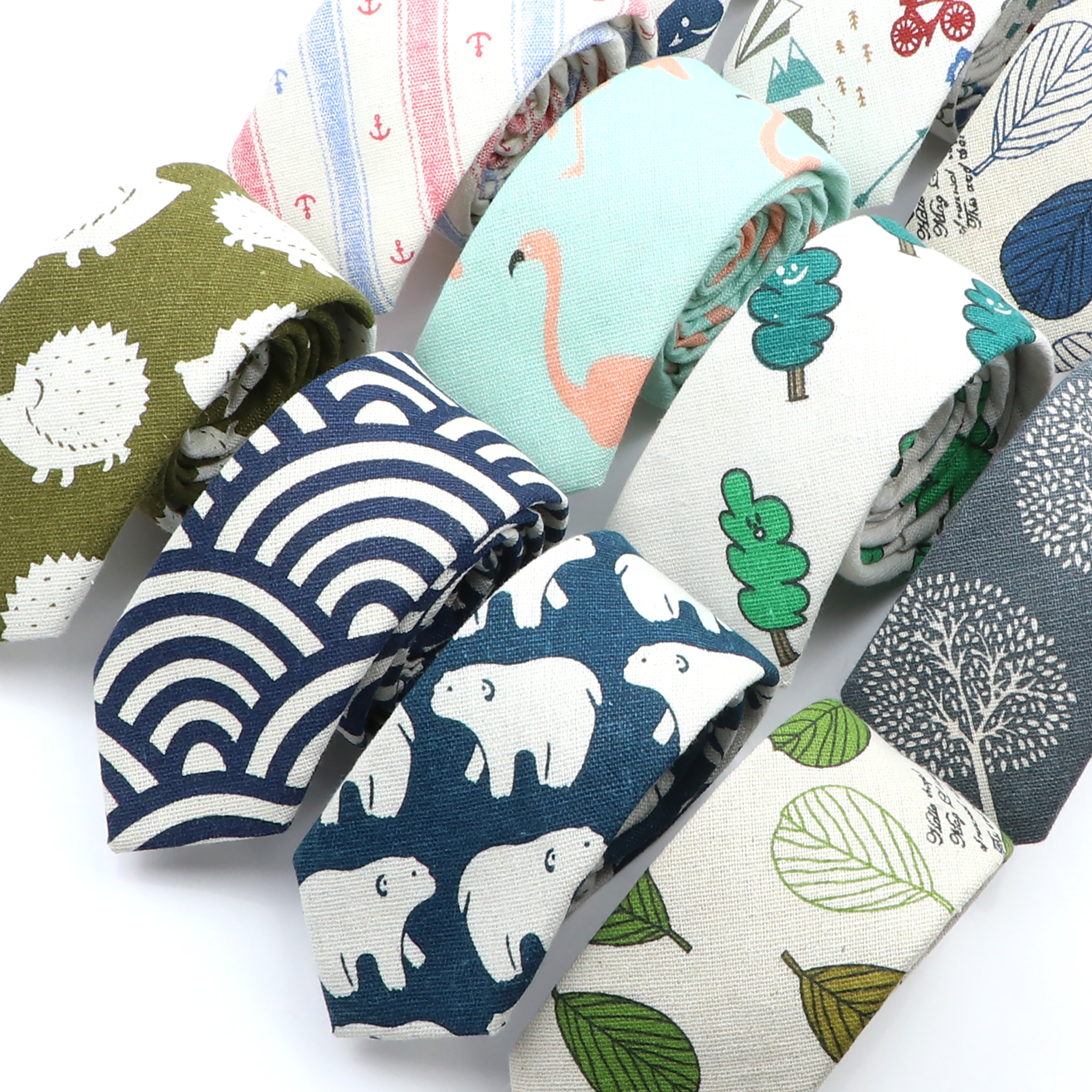 New Cartoon Linen Tie Skinny Casual Necktie For Wedding Party Neckties Classic Suits Floral Animal Print Neck Ties Cravat Gift