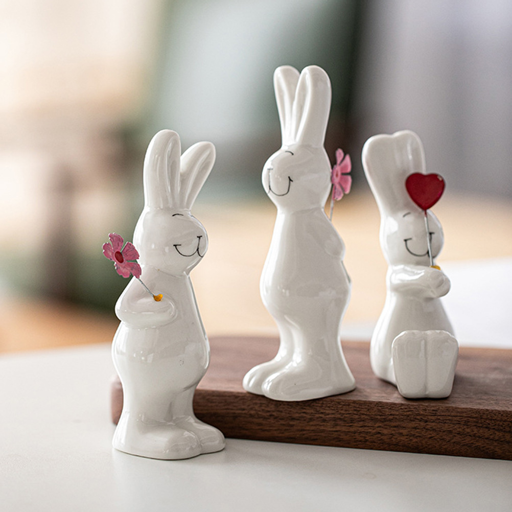 Rabbit Bunny Figurine Decor Ceramic Figurines Statue Easter Zodiac Year Sculpture Chinese Statues Mini Ornament New Ornaments