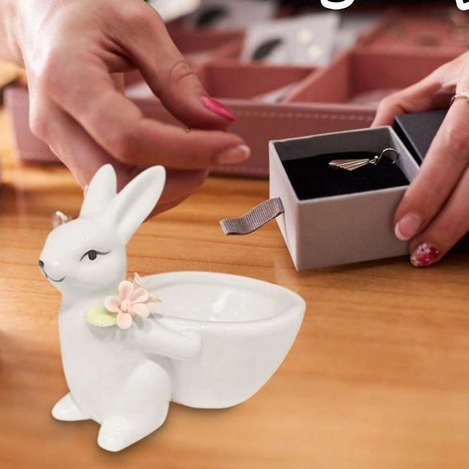 Rabbit Figurines Cute Ceramic Decorative Bunny Snack Serving Bowl Jewelry Holder Tray For Easter Desktop Office Gift Home Decor